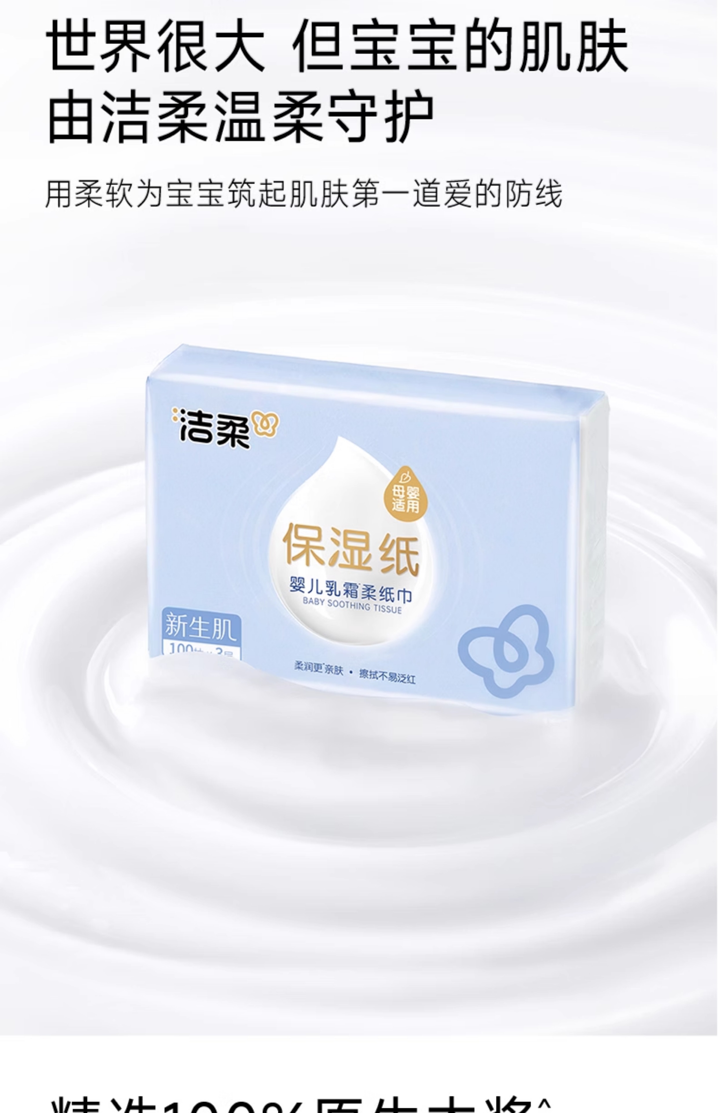 洁柔正品乳霜纸婴儿柔纸巾专用云柔巾便携手帕纸保湿面巾抽纸