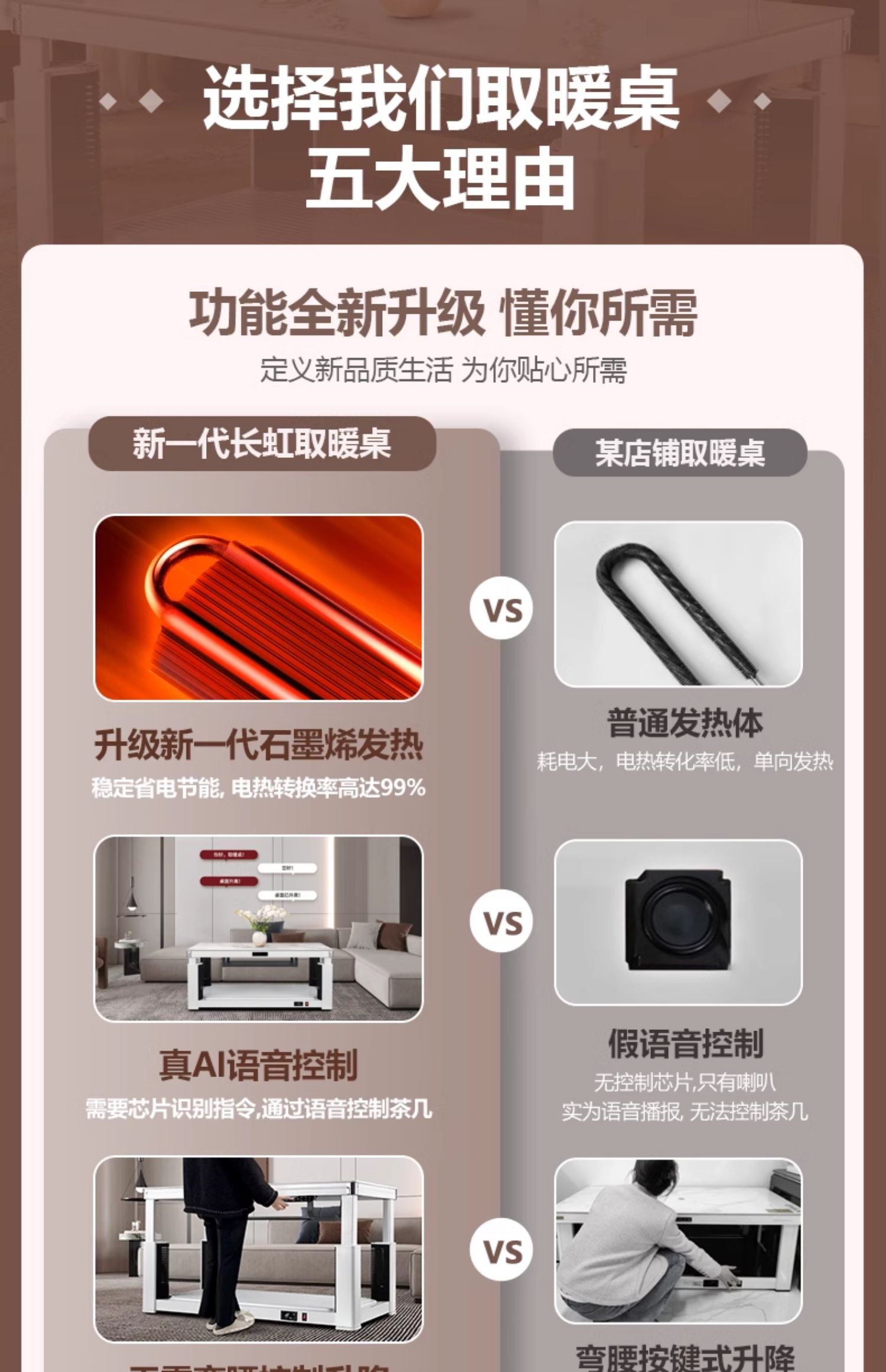 长虹升降取暖茶几一体电暖桌取暖桌A4电暖炉2025新款家用烤火桌子