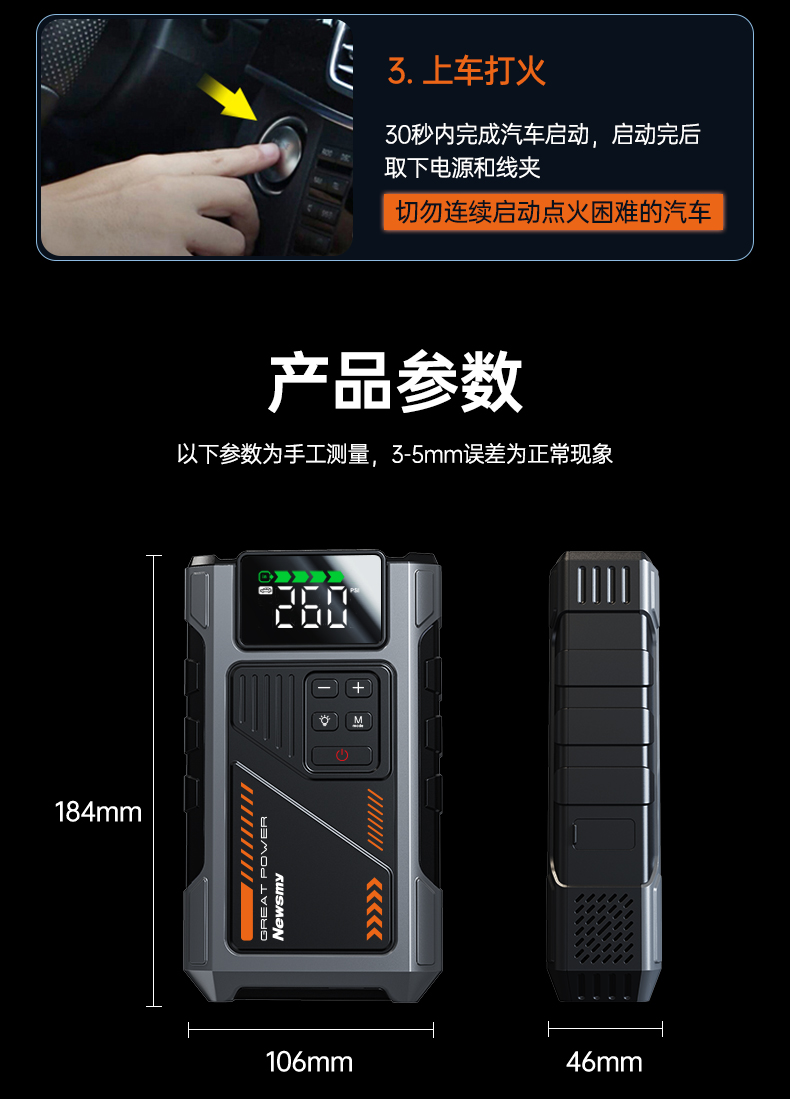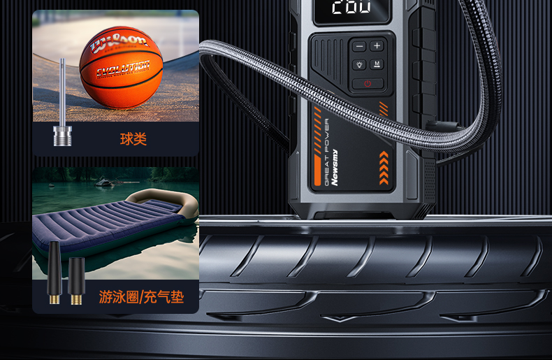 纽曼汽车应急启动电源专用搭电宝充气泵一体机电瓶强启打火神器