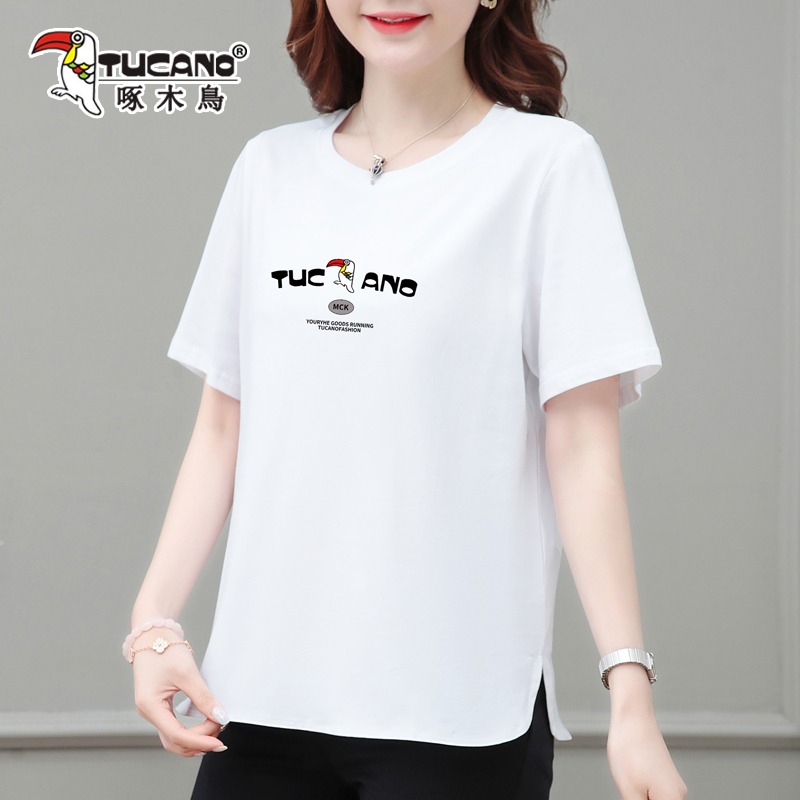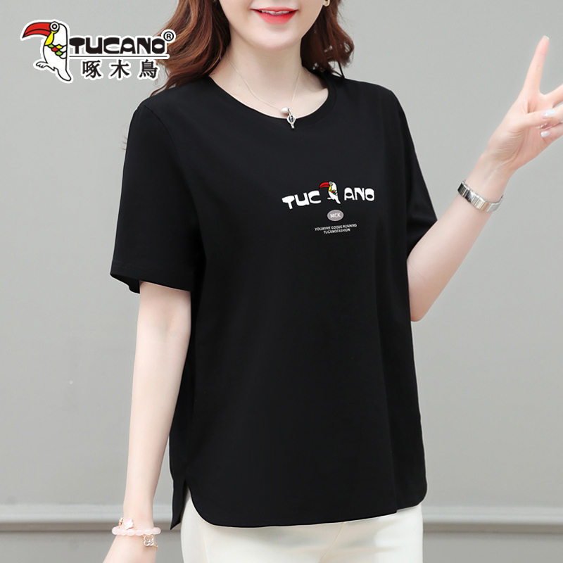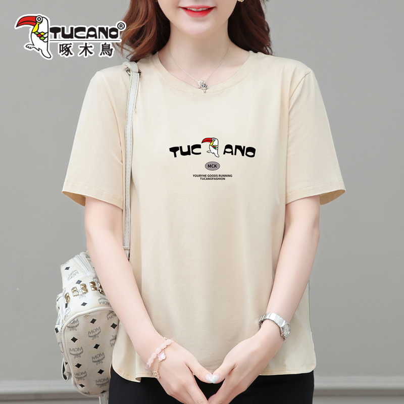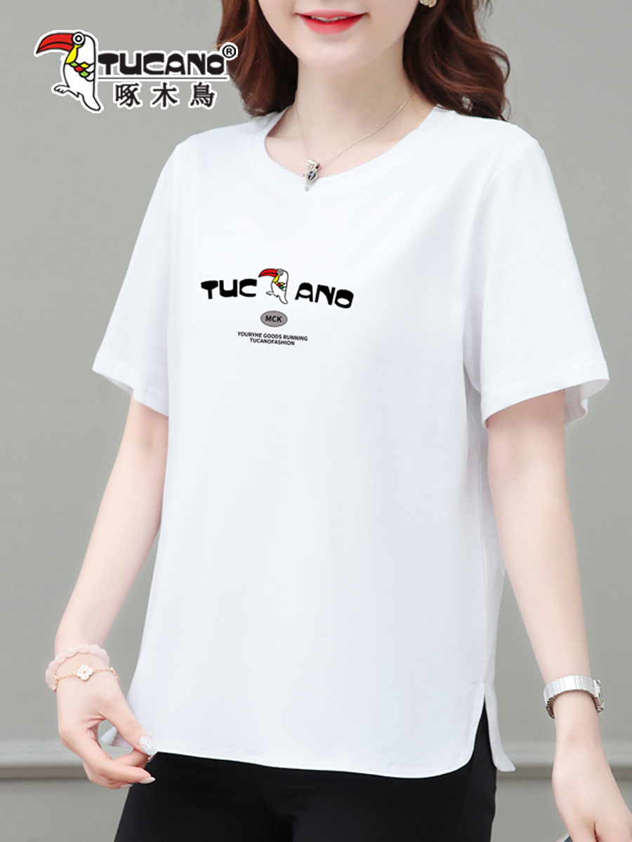 啄木鸟女士短袖t恤女2025新款上衣夏季中年妈妈纯棉宽松大码女装