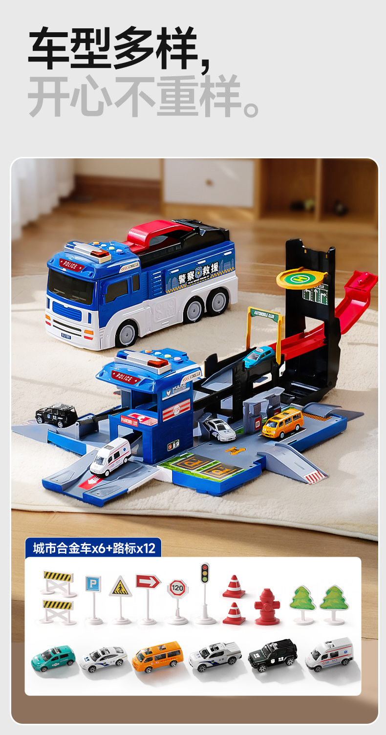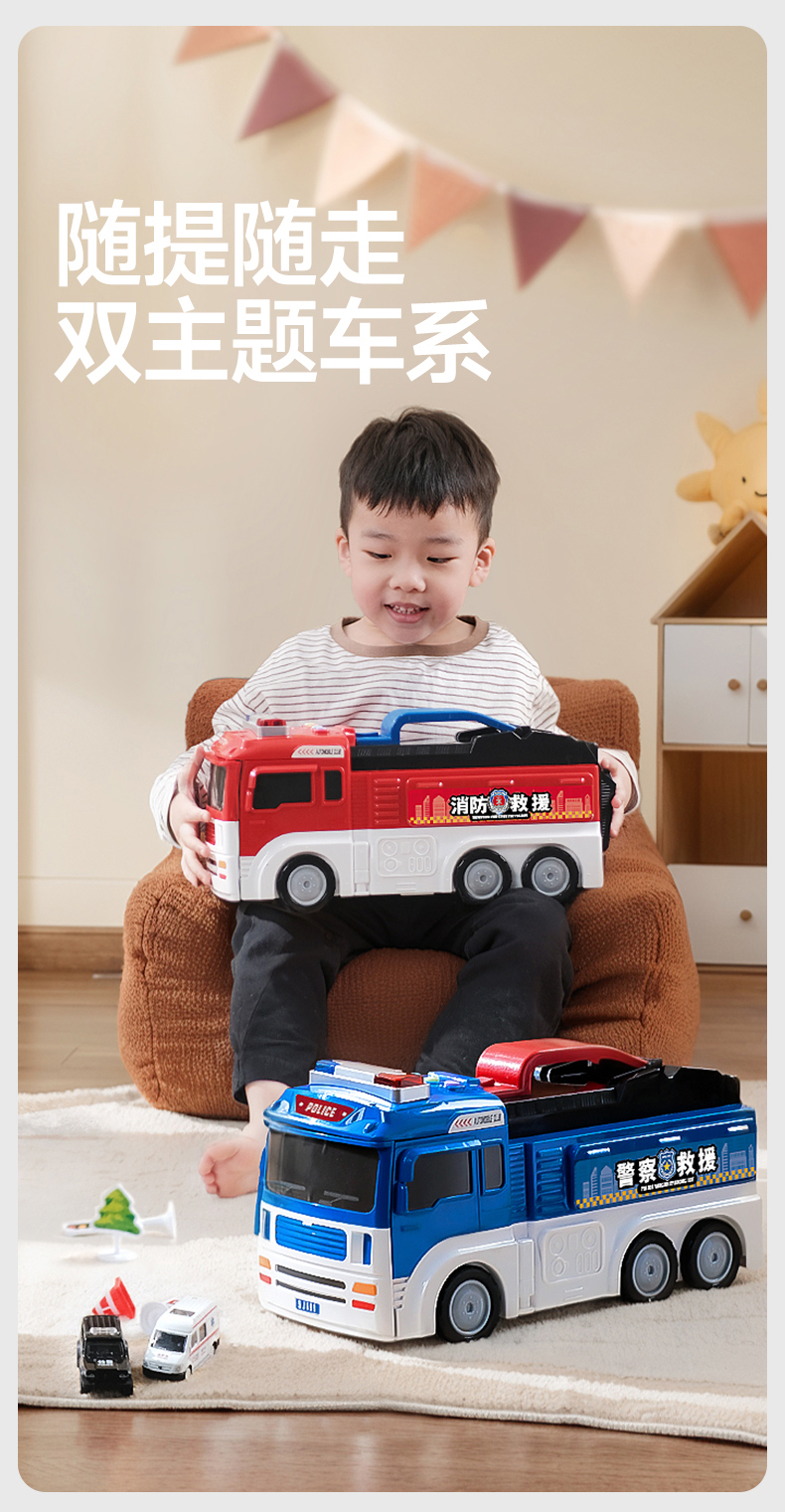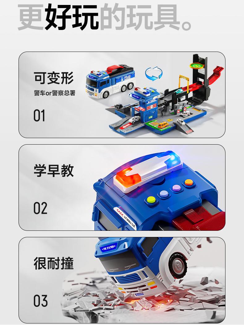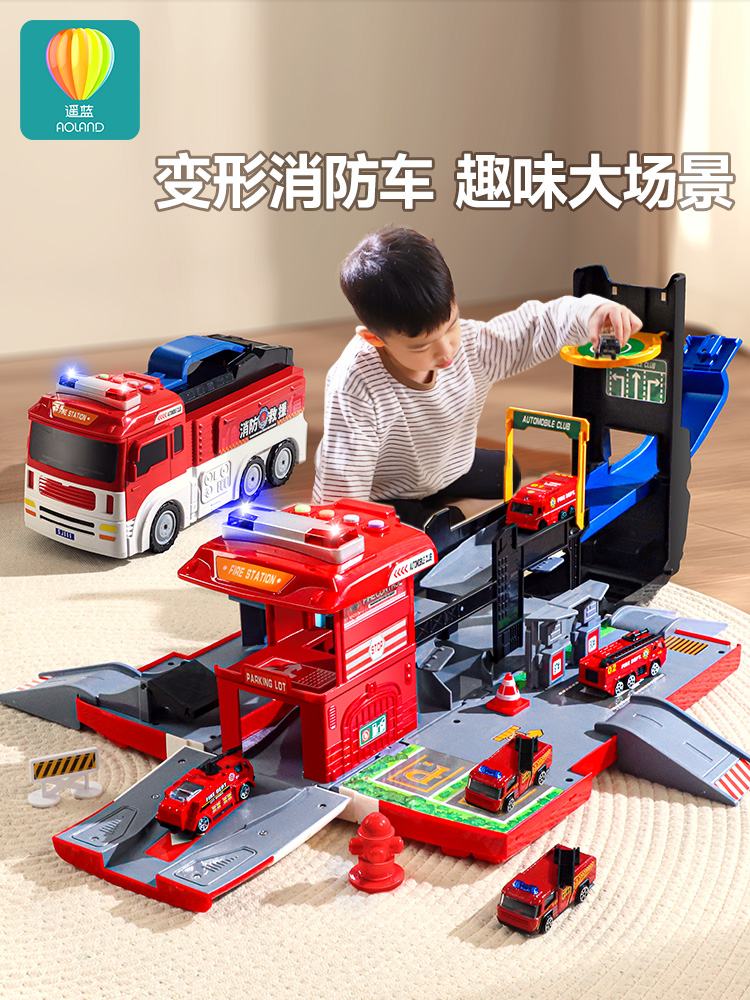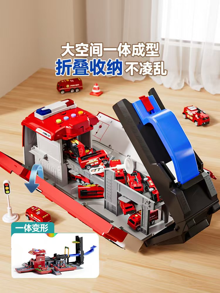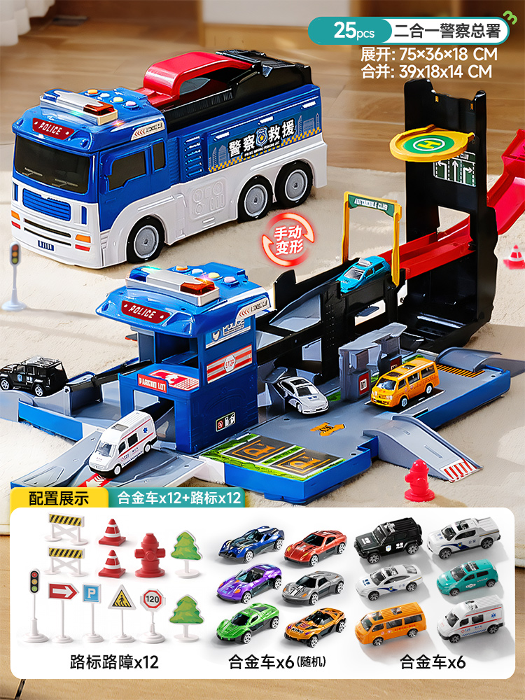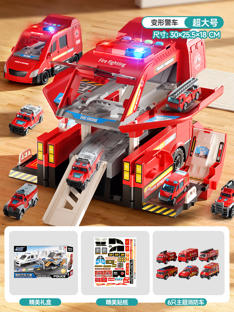 消防车玩具男孩大号变形合金云梯车警车停车场小汽车儿童套装圣诞